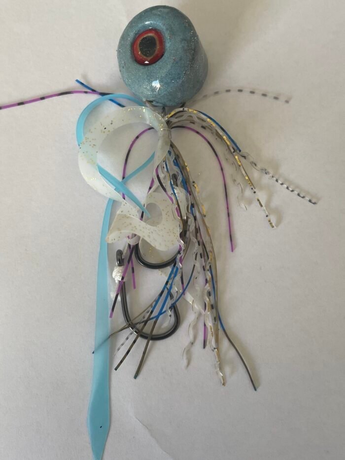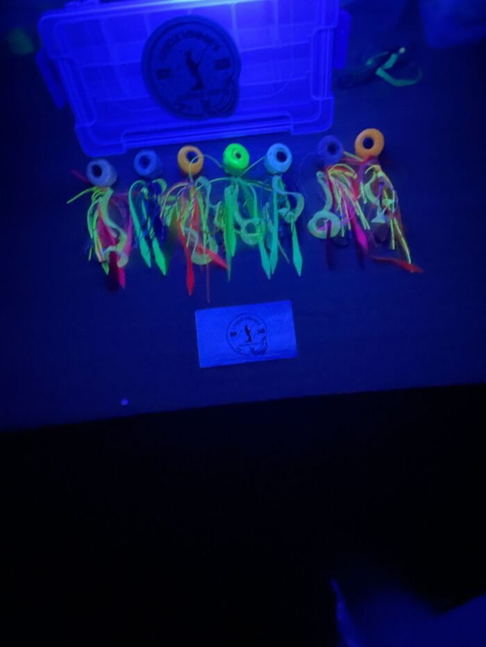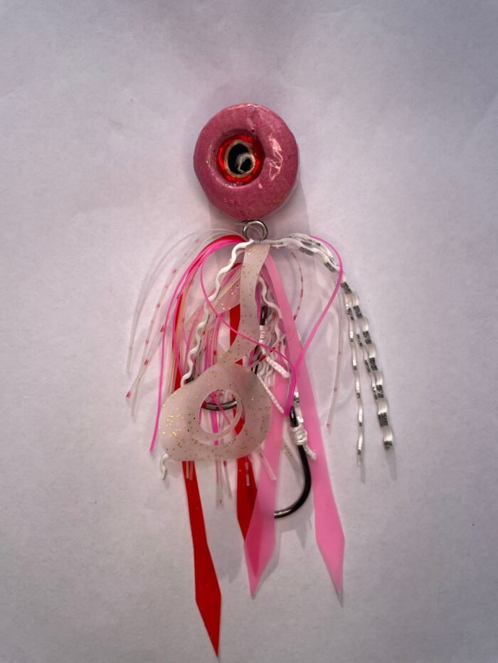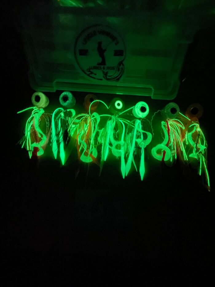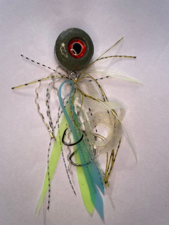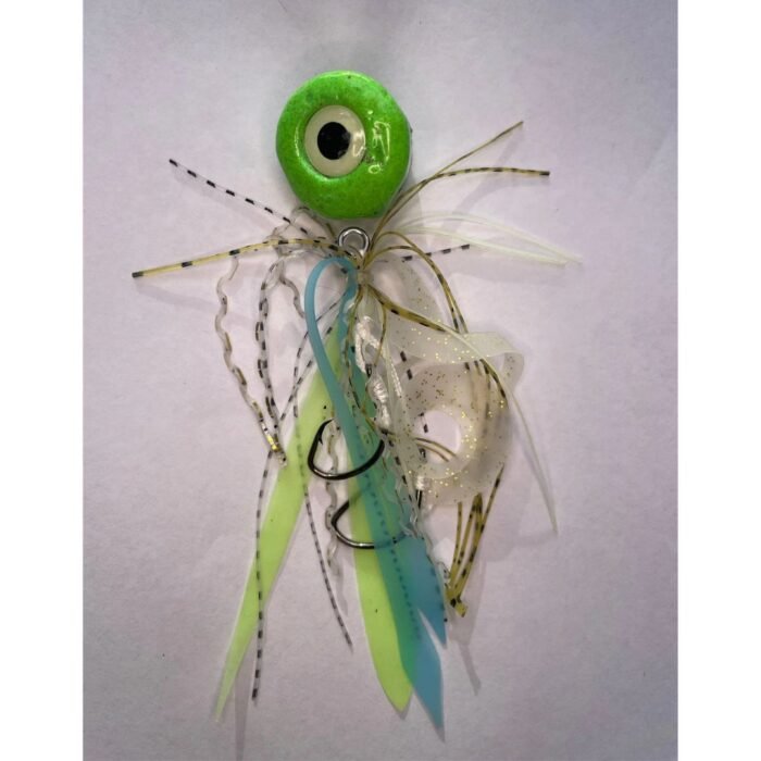 The Boofhead is a custom-built lead slider flasher rig perfect for mid to bottom water column reef fishing. It features an oversized 10mm eye on each side, which imitates a real bait fish or squid as well as glow hook flashers for ultimate visibility. This versatile rig is most effective when kept vertical to the boat and slowly retrieved a few times then released to bottom and repeated, causing the lure to “dance”. It can also be used by leaving the rod in a rod holder and letting the boat do all the work.